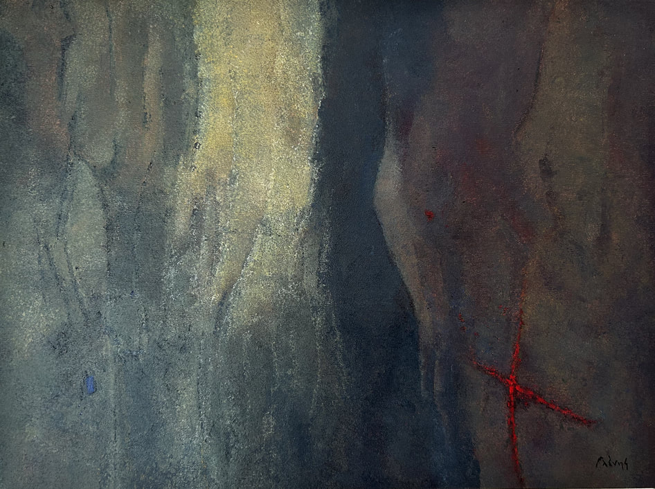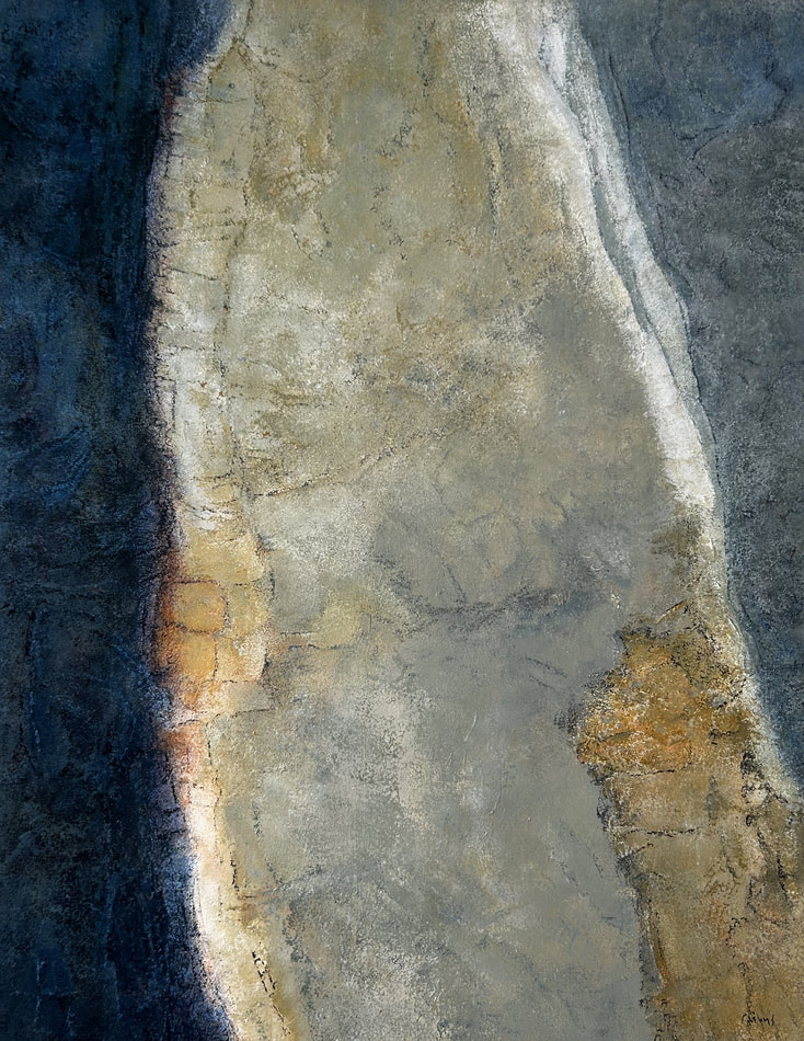 Η Λευκάδα είναι ομφαλικό σημείο της γης όπου ενώνεται η θάλασσα με τον ουρανό. Ένας λευκός βράχος αναμεταξύ του υδάτινου και αέρινου στοιχείου. Σημείο ισορροπίας της γαλήνης με την ταραχή. Ο Κώστας Γλένης είναι γέννημα της Λευκάδας και γαλουχήθηκε από αυτήν. Με φυσικό και αβίαστο τρόπο έγινε ζωγράφος εικόνων αφιερωμένων στο μεγαλείο της φύσης εκεί. Αισθανόμενος το θαύμα του τόπου εναρμονίστηκε με τις ενέργειές του – ήρεμες και έντονες, γόνιμες και καταστρεπτικές, αρχέγονες και τρέχουσες. Στο πέρασμα του χρόνου μυήθηκε στα μυστήριά του χώρου και βρήκε ευαίσθητους τρόπους να τον αναπαραστήσει όπως του πρέπει, με τη δέουσα ευλάβεια, ταπεινότητα και σεβασμό. Η θάλασσα και ο ουρανός αποτελούν κορύφωση της μυσταγωγίας στη φύση. Το ύδωρ είναι ο πλακούντας και το σάλιο, ο αγέρας είναι το πνεύμα και η πνοή. Η μεταξύ τους ερωτική σχέση γεννά την ίδια τη Λευκάδα – ευλογία, ευχή και φυλαχτό. Τα προκείμενα έργα του Γλένη καταγράφουν μυσταγωγικά αυτή την ιερή σχέση στο μεγαλείο της φυσικότητάς της. Οι πίνακες του παρόντος κύκλου παρουσιάζουν ψυχρές αποχρώσεις σε ποικίλες συνθέσεις και σχηματισμούς – αγγίγματα, αντικρίσματα, αντιστίξεις, διατρήσεις, διεισδύσεις, εγκολπώσεις, εκρήξεις, κατακρημνίσεις, παραθέσεις, πλαισιώσεις, προσμίξεις, στροβιλισμούς, συγκρούσεις, χαϊδέματα και φωτοσκιάσεις. Αφορούν ενεργειακές σχέσεις, που παραπέμπουν ευρύτερα στο μυστήριο του κόσμου –γέννηση, έρωτα και θάνατο. Τα έργα του Γλένη είναι αισθαντικές τοπιογραφίες, παράθυρα στη καρδιά και τη ψυχή της γενέθλιαςκαι γενεσιουργού νήσου. Ως τέτοια, αποτελούν πολύτιμη παρακαταθήκη του σύγχρονου πολιτισμού του ιονίου χώρου.